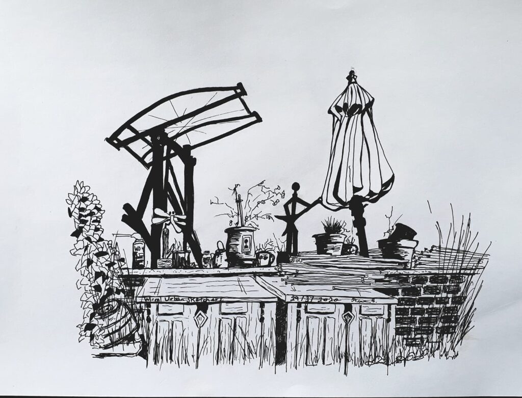 So naturally I am getting a lot of pleasure from Steve’s increasing mastery of the black and white medium. This drawing has got bags of detail and much variety in the markmaking.