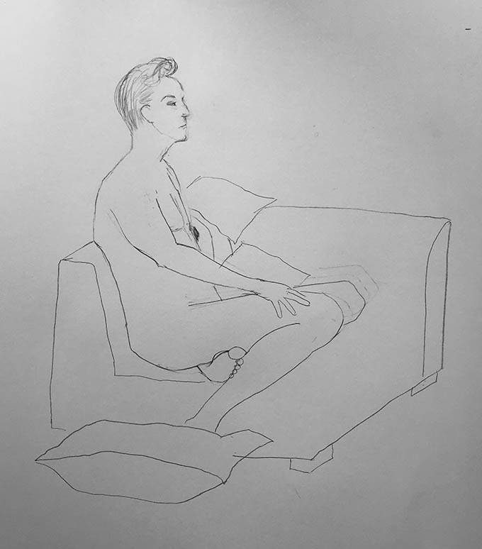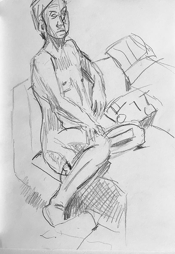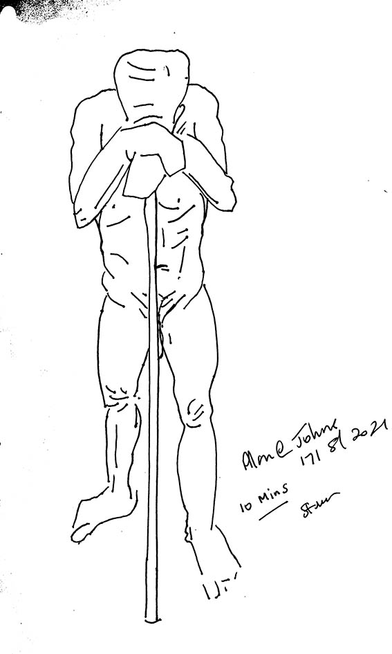 There’s been plenty of life drawing on offer lately, but it’s mainly been online. So, great to get in a real model to draw from life. Allan gave us a series of poses ranging from 30 seconds to 35 minutes.